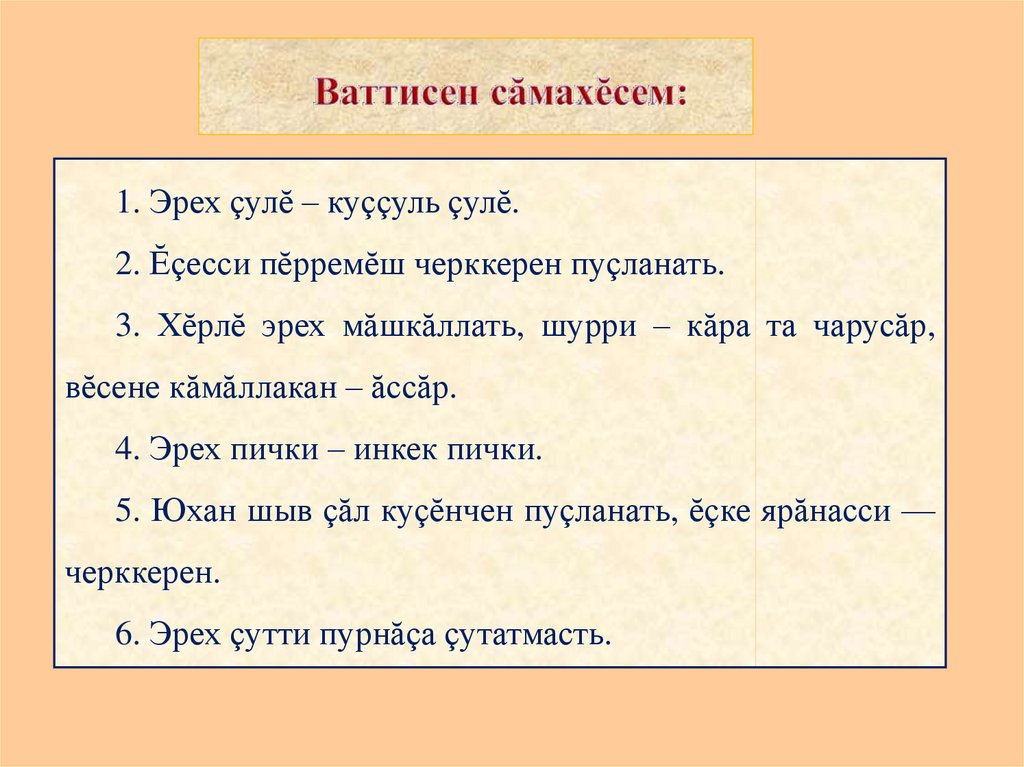 3. Ултă ваттисен сăмахне вĕренсе килмелле.