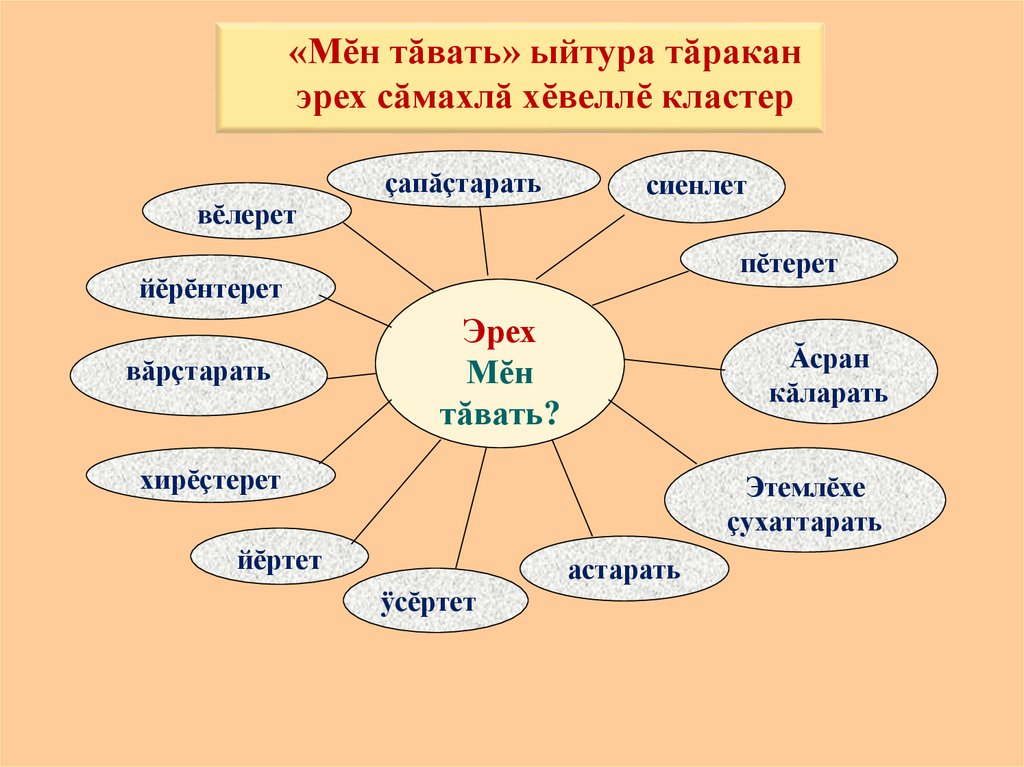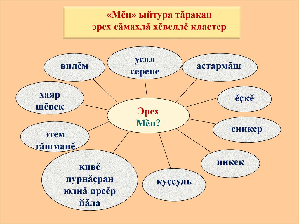 «Мĕн тăвать» ыйтура тăраканэрех сăмахлă хĕвеллĕ кластер