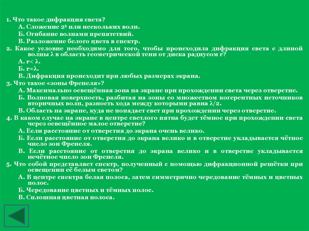 1. Что такое дифракция света?А. Сложение 2х или нескольких волн.