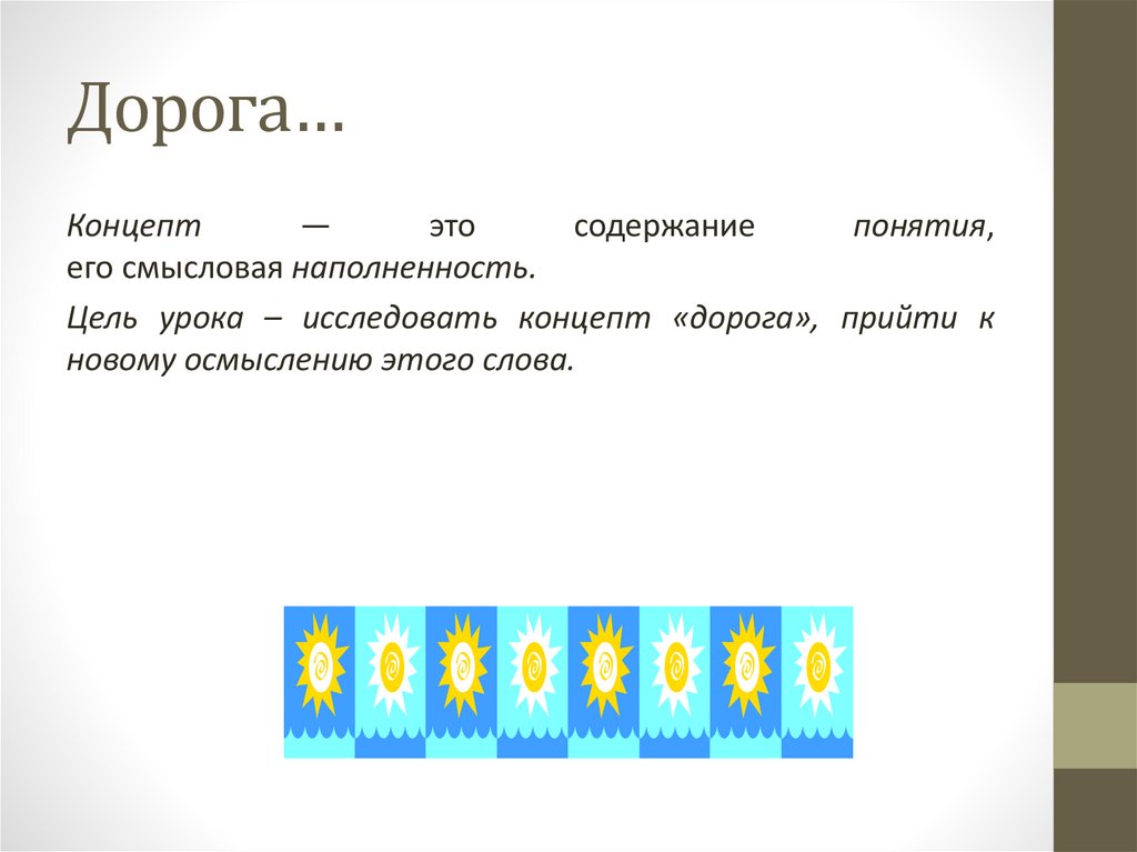 Цель урока – исследовать концепт «дорога», прийти к