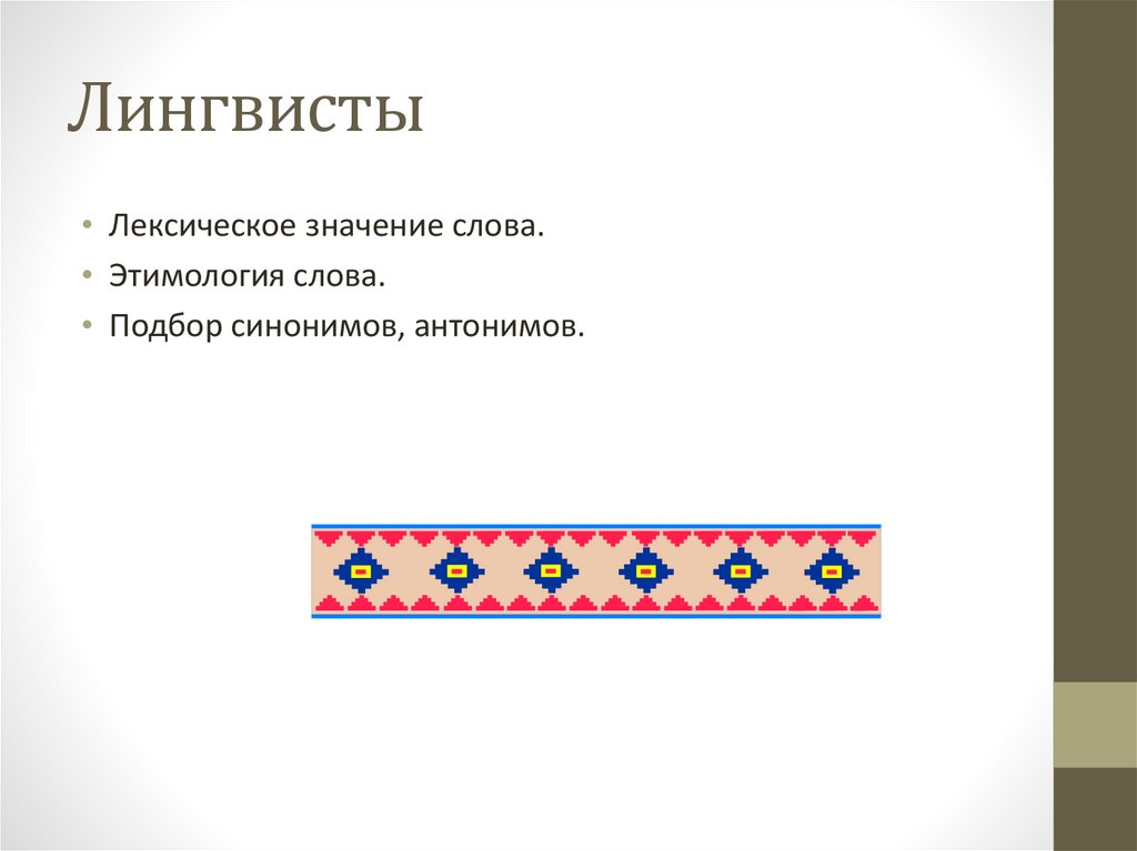 Лингвисты• Лексическое значение слова.