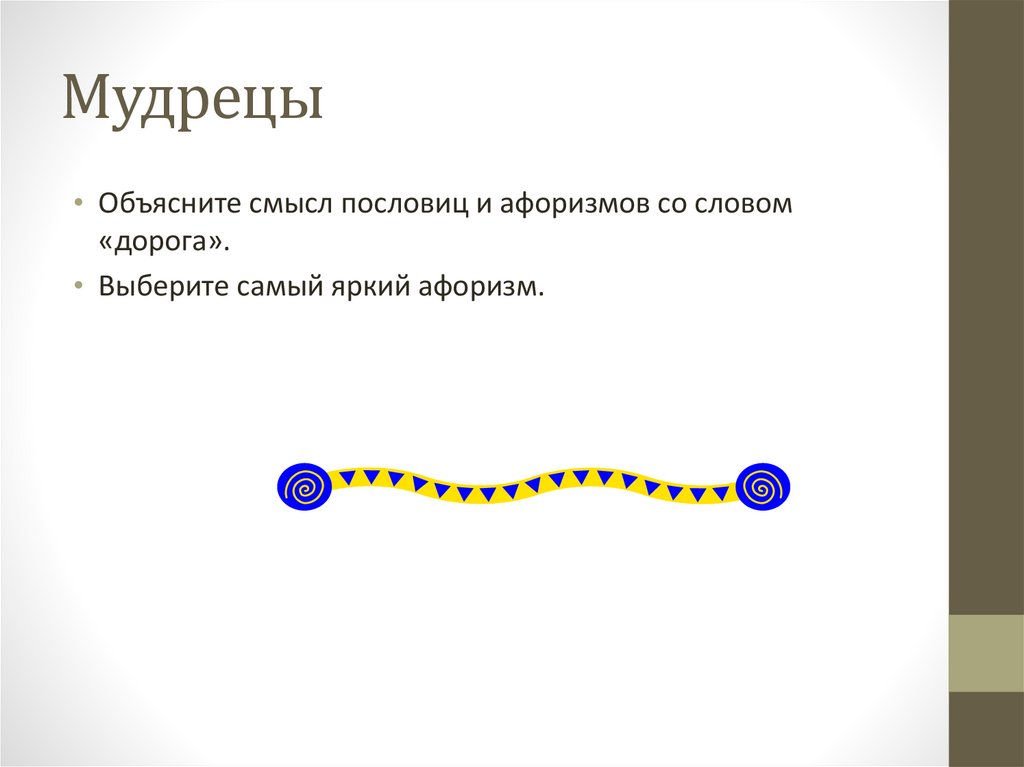 Мудрецы• Объясните смысл пословиц и афоризмов со словом