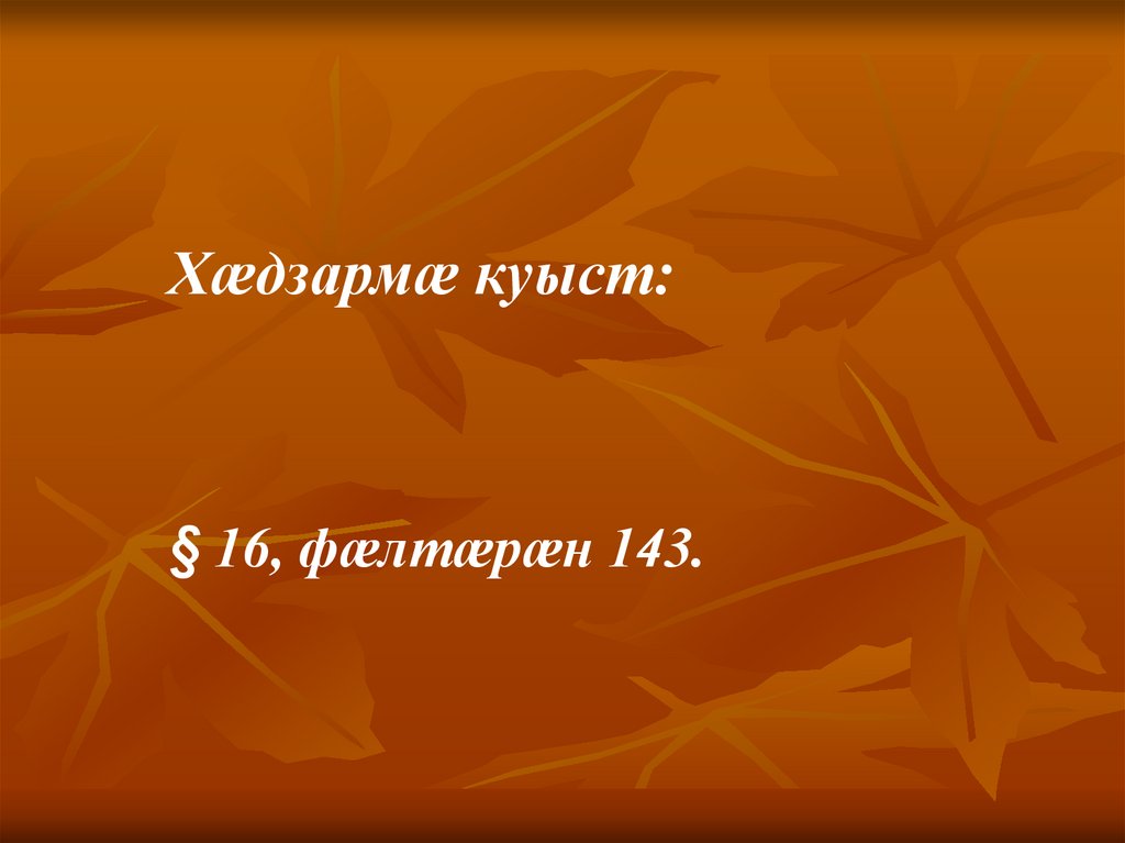 Хæдзармæ куыст:§ 16, фæлтæрæн 143.