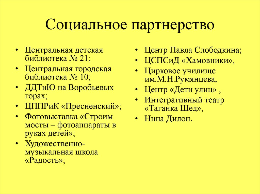 Социальное партнерство• Центральная детская