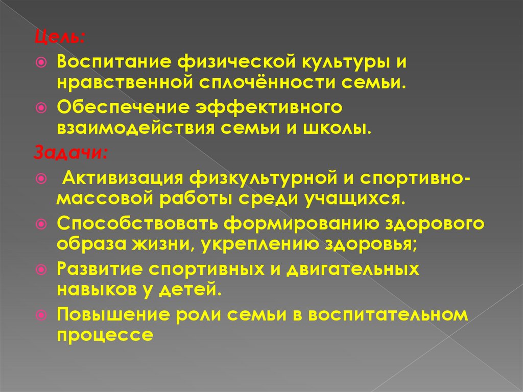 Элементом семейного воспитания являетсяфизическое воспитание, что проведение