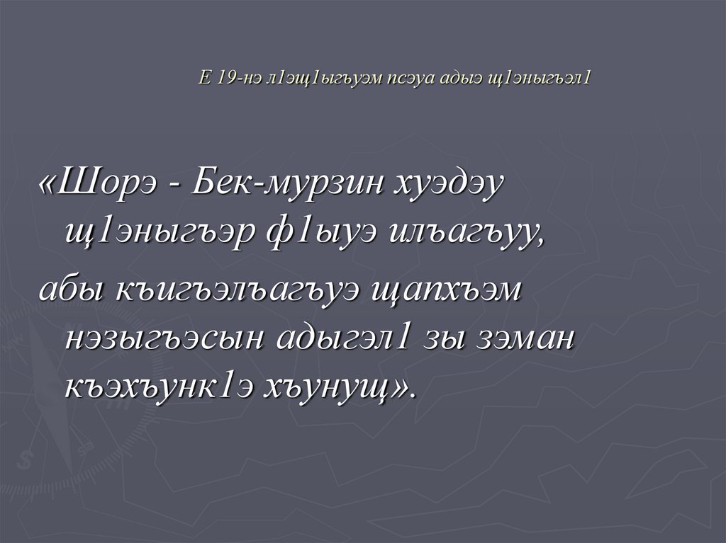 1. Е 19-нэ л1эщ1ыгъуэм псэуа адыэ щ1эныгъэл1
