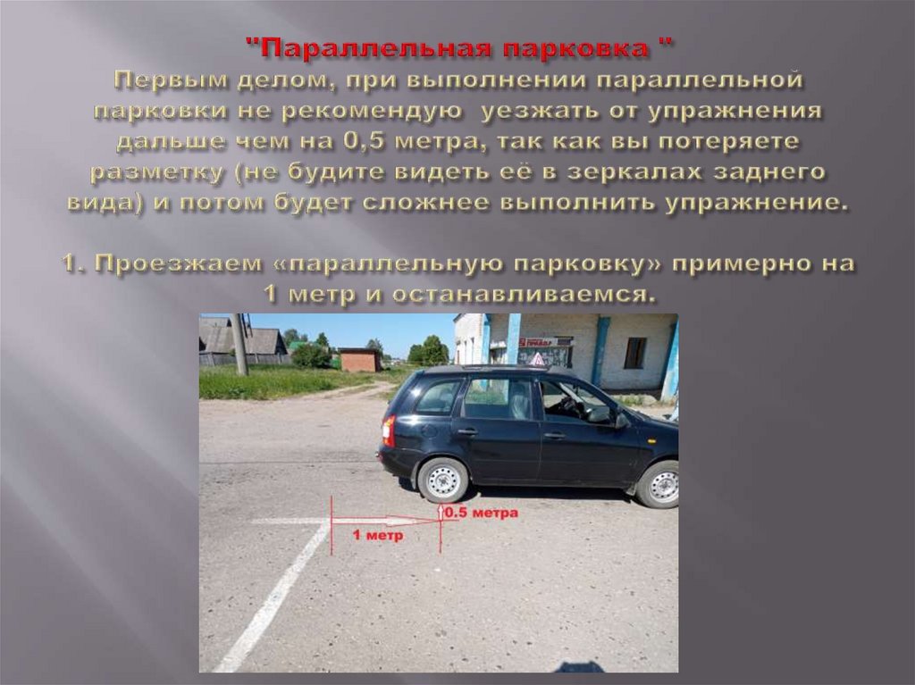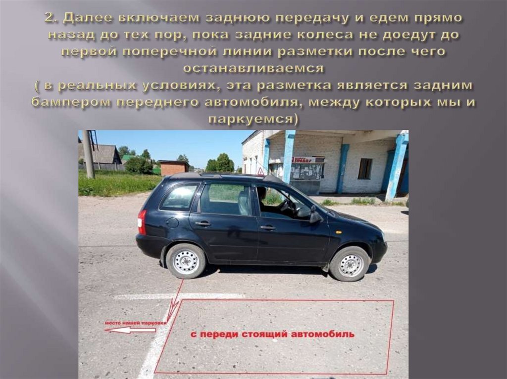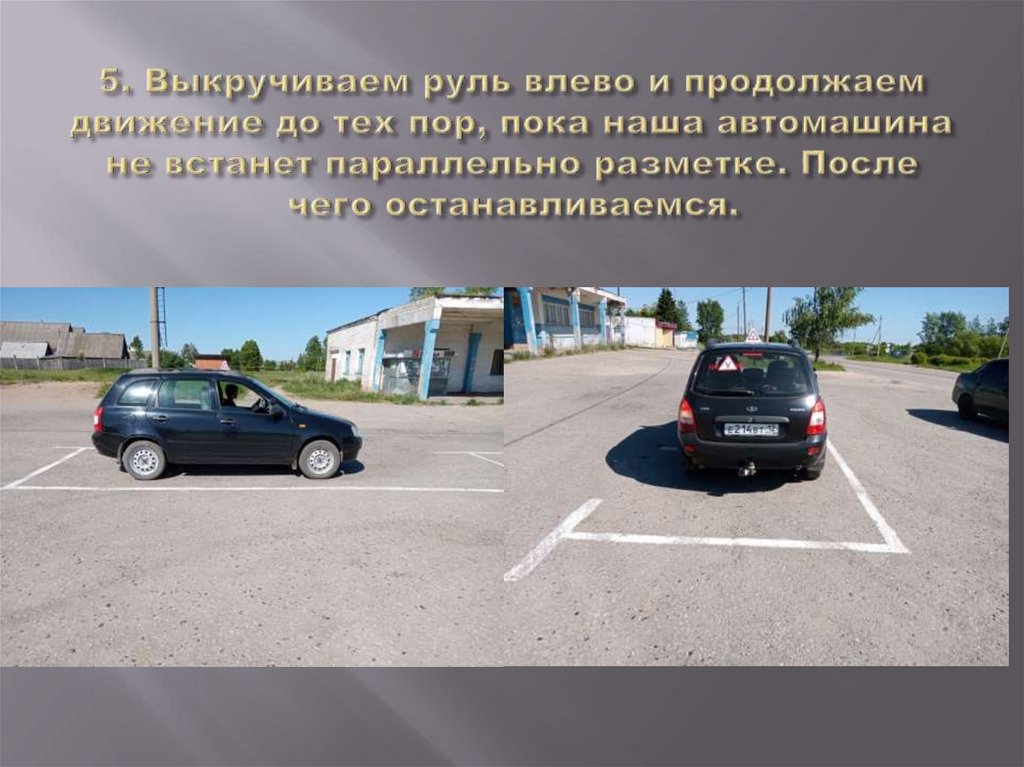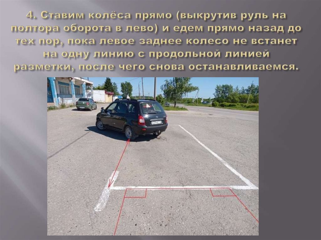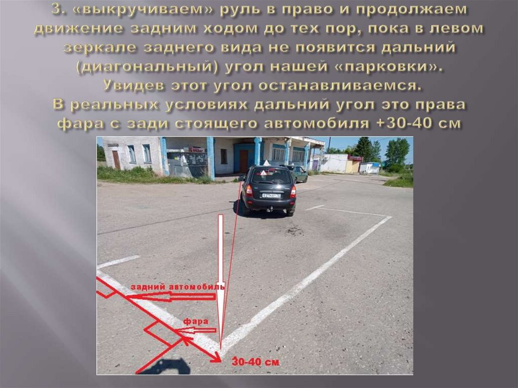 Постановка транспортного средства на место стоянки при движении задним ходом с поворотом на 90 градусов"