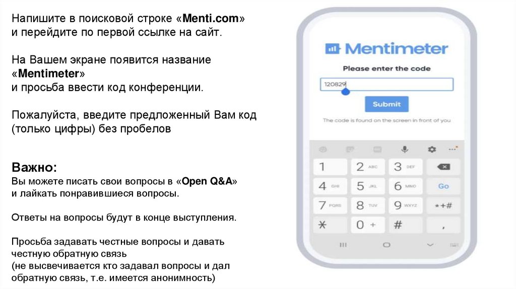 Напишите в поисковой строке «Menti.com»и перейдите по первой ссылке на сайт.