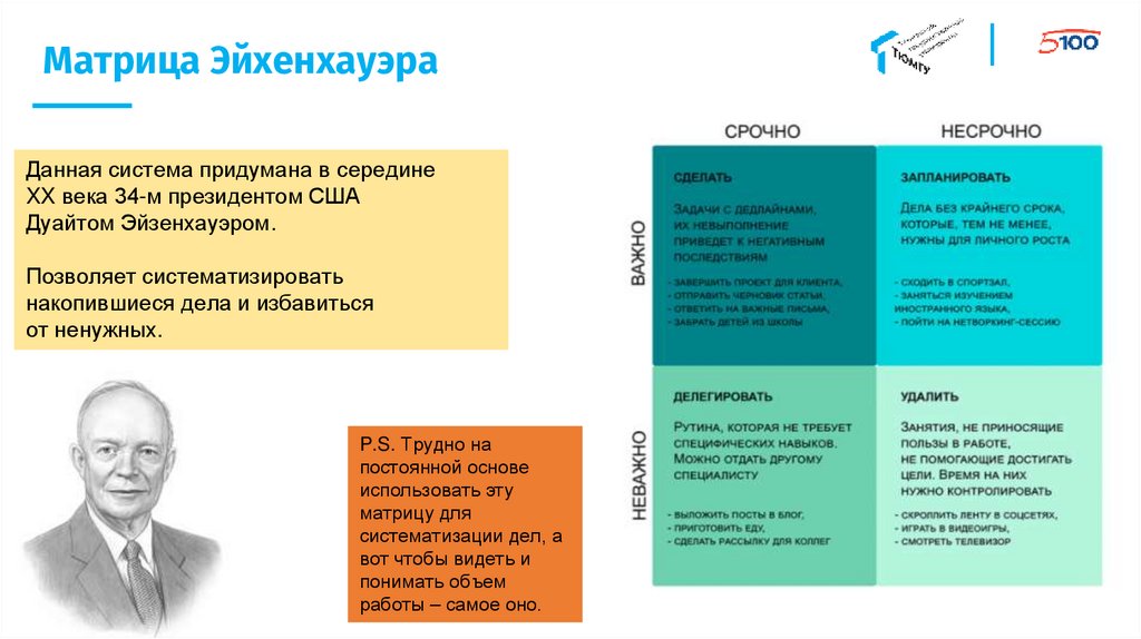 Матрица ЭйхенхауэраДанная система придумана в середине