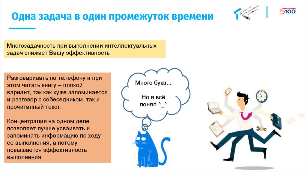 Одна задача в один промежуток времениМногозадачность при выполнении интеллектуальных