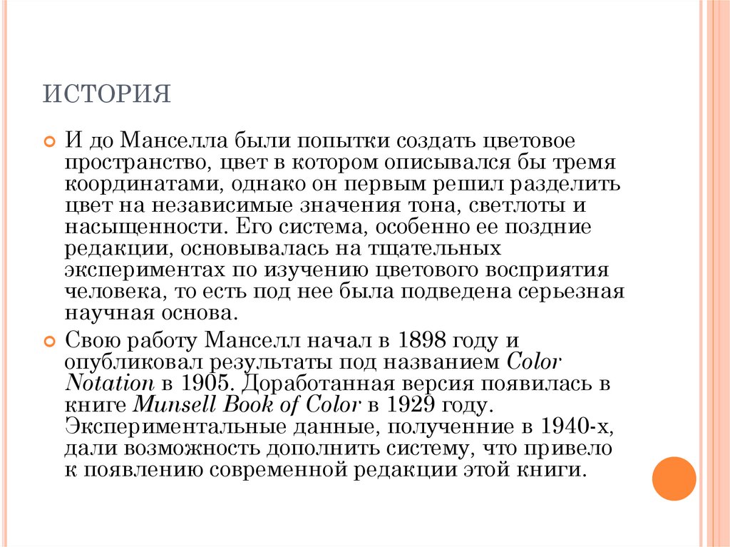 ИСТОРИЯИ до Манселла были попытки создать цветовое