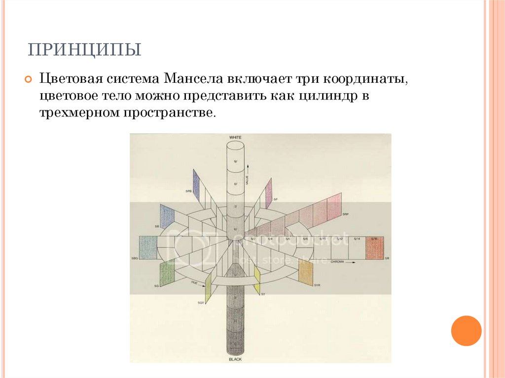 ПРИНЦИПЫЦветовая система Мансела включает три координаты,