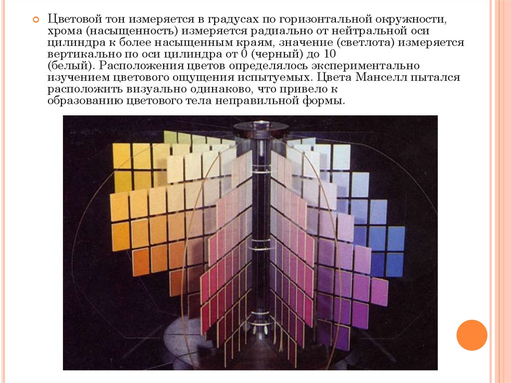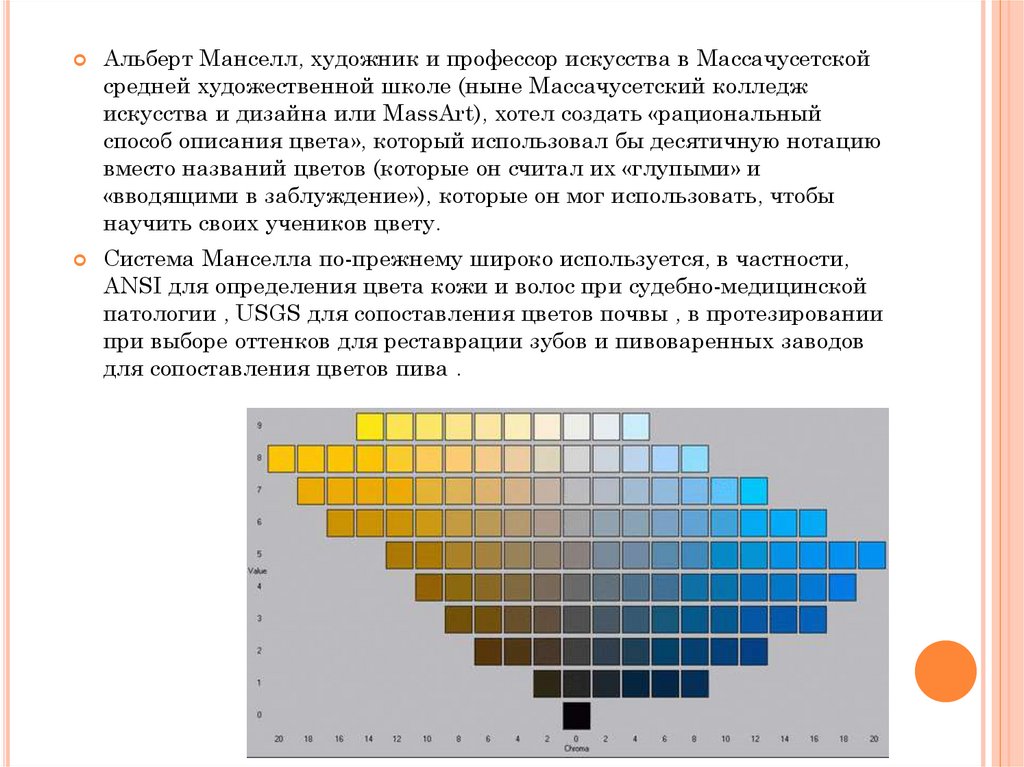 изучением цветового ощущения испытуемых. Цвета Манселл пытался