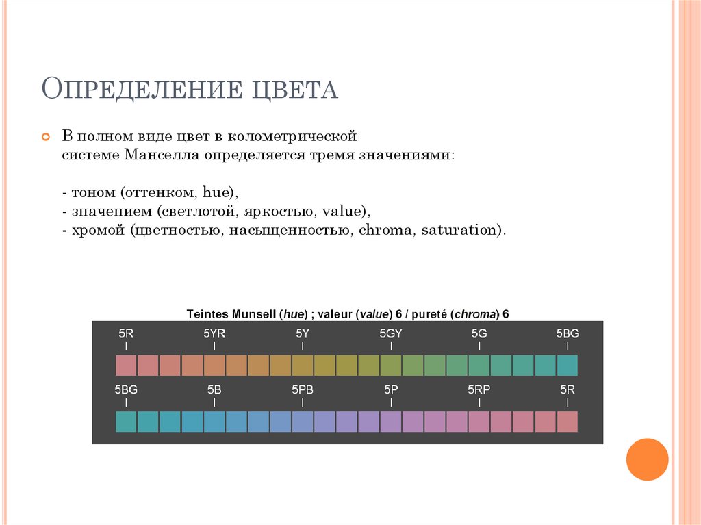 системе Манселла определяется тремя значениями: