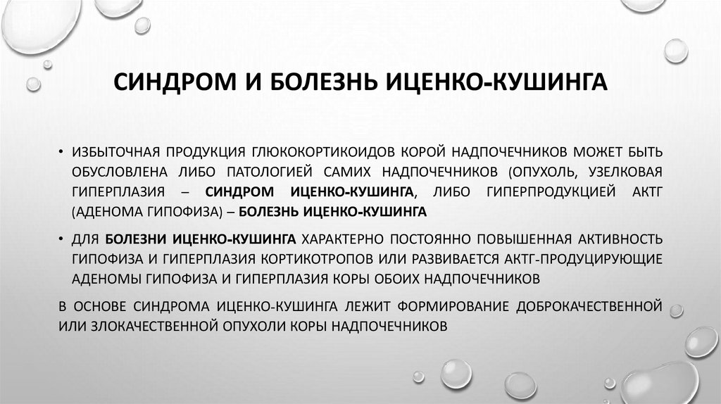СИНДРОМ И БОЛЕЗНЬ ИЦЕНКО-КУШИНГА• ИЗБЫТОЧНАЯ ПРОДУКЦИЯ ГЛЮКОКОРТИКОИДОВ КОРОЙ НАДПОЧЕЧНИКОВ МОЖЕТ БЫТЬ