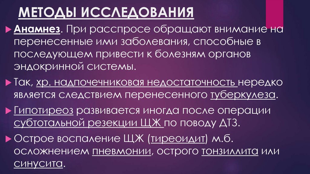 МЕТОДЫ ИССЛЕДОВАНИЯАнамнез.