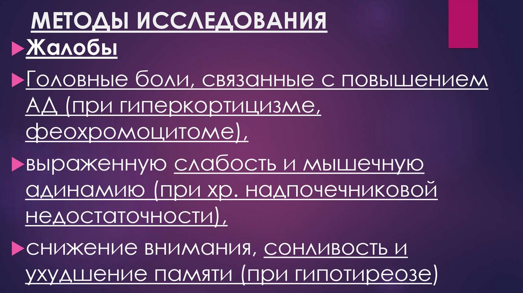МЕТОДЫ ИССЛЕДОВАНИЯЖалобы