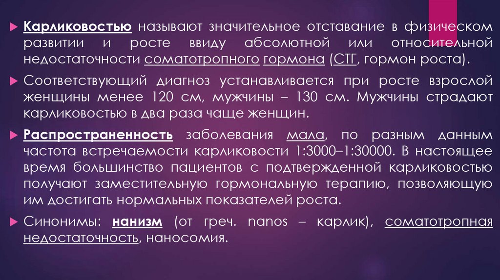 отмечается очень низкий рост (у мужчин ниже 130 см, у