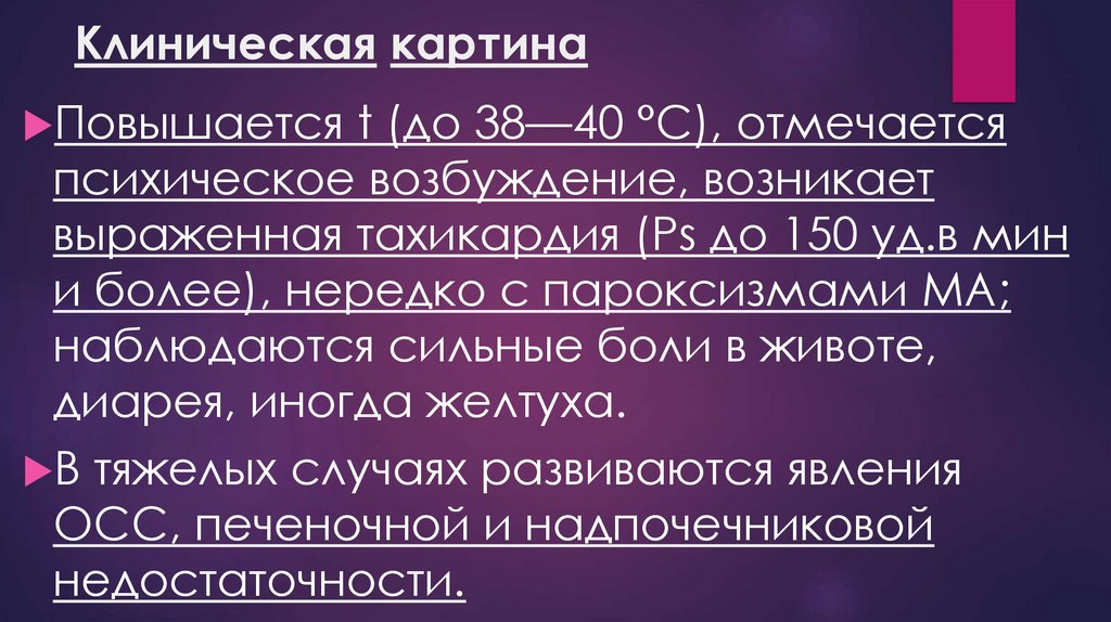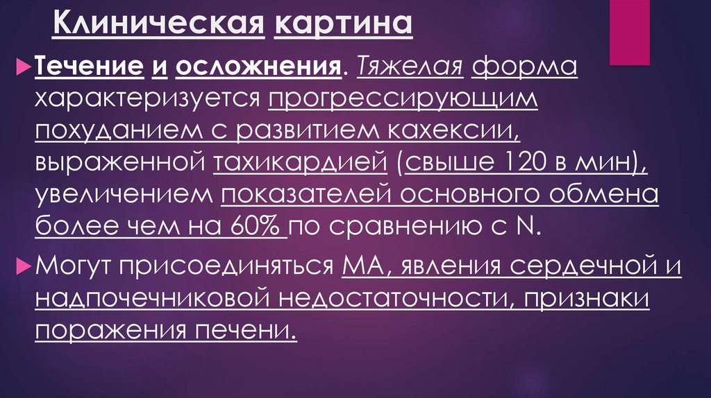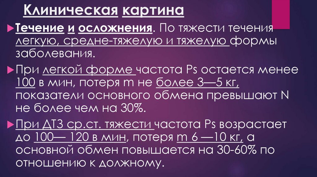 до 100— 120 в мин, потеря m 6 —10 кг, а