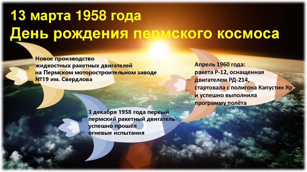 13 марта 1958 годаДень рождения пермского космоса