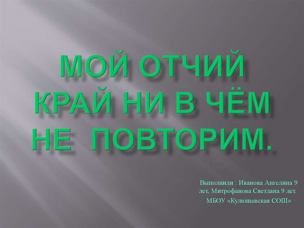 Мой отчий край ни в чем не повторим