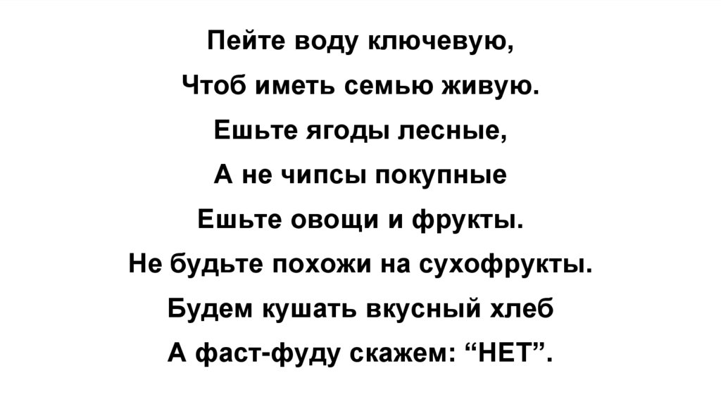 Пейте воду ключевую,Чтоб иметь семью живую.