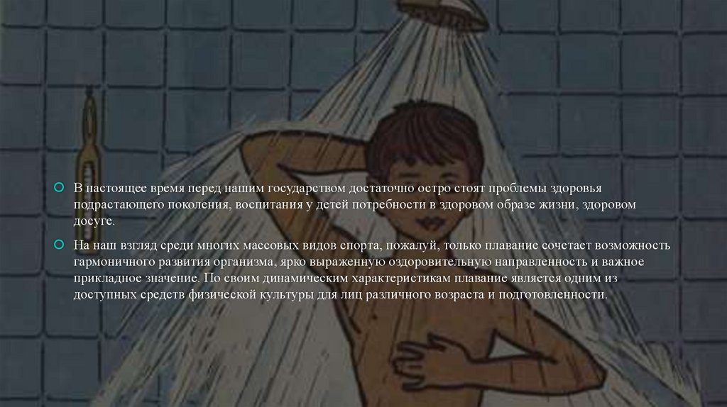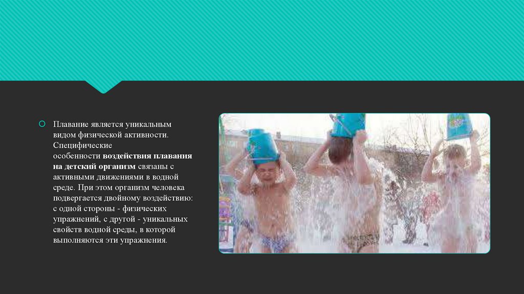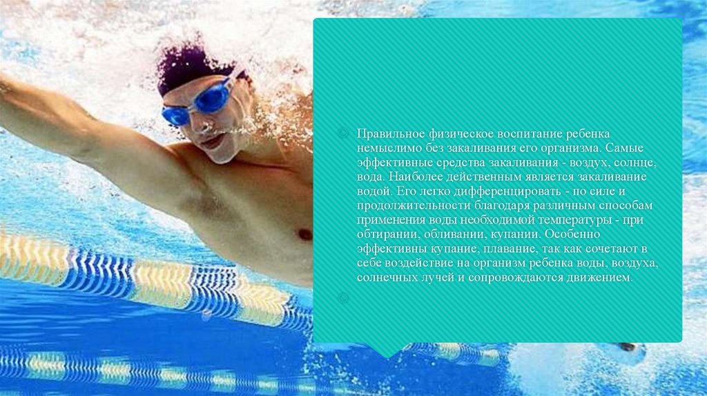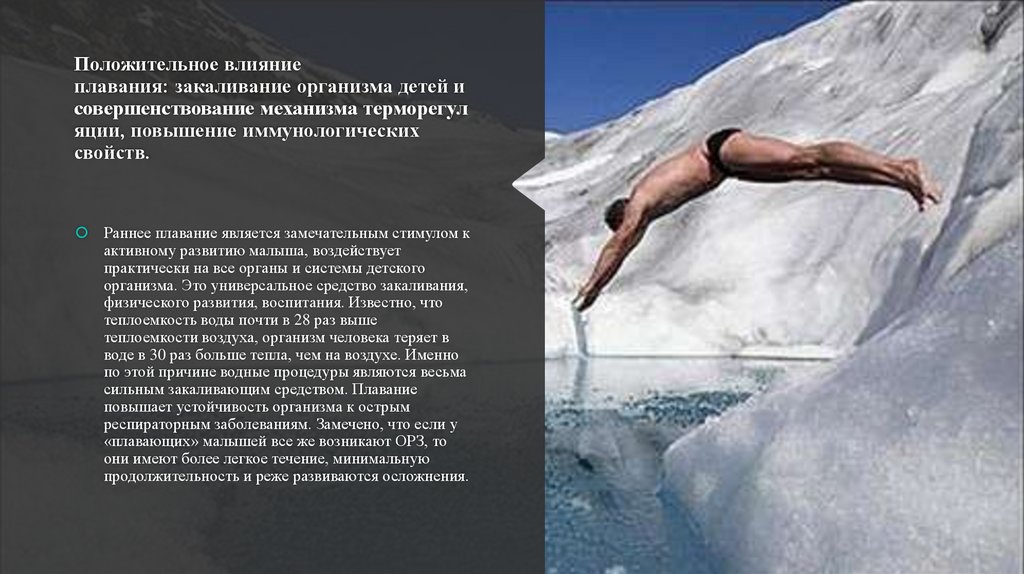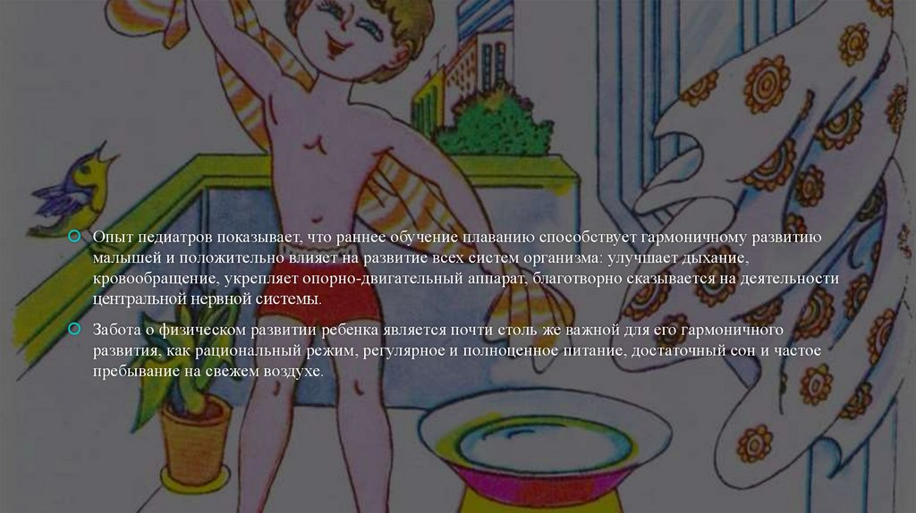 раньше приучить ребенка к воде, научить его плавать, тем полнее скажется положительное