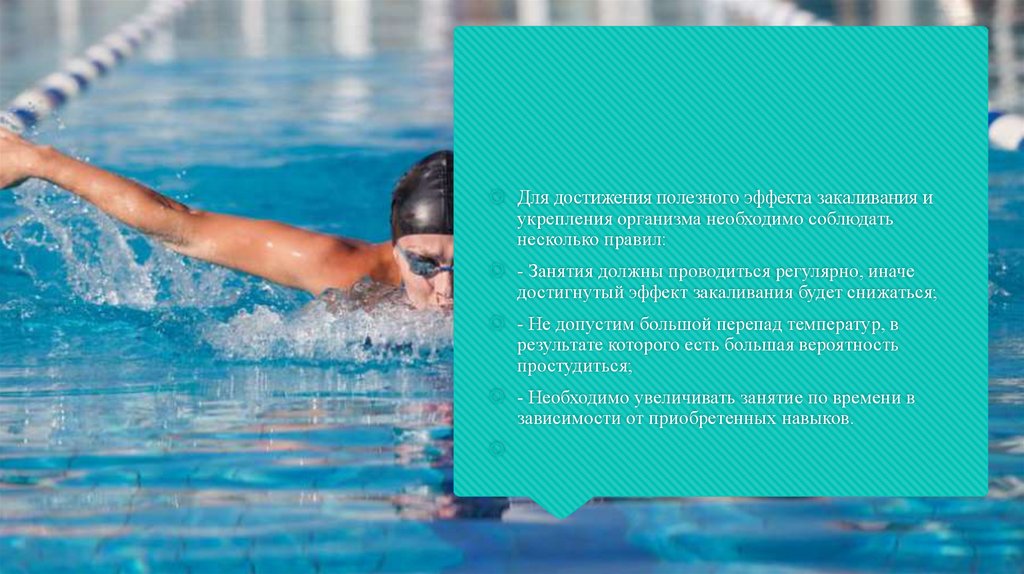 Для достижения полезного эффекта закаливания иукрепления организма необходимо соблюдать