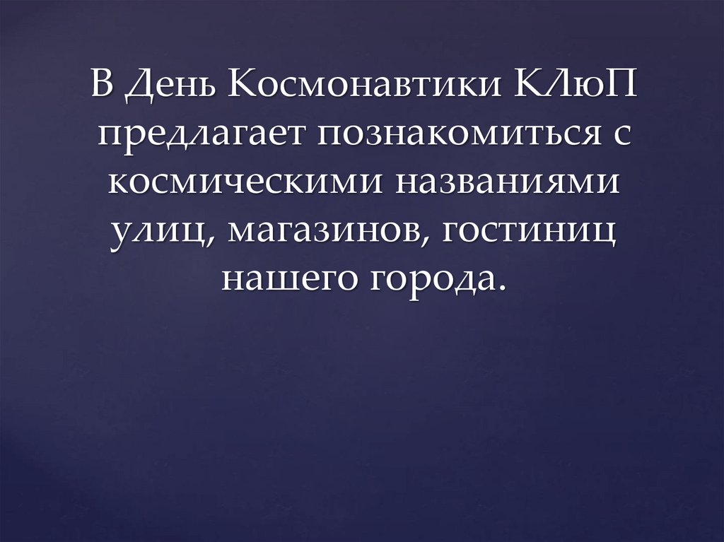 В День Космонавтики КЛюПпредлагает познакомиться с