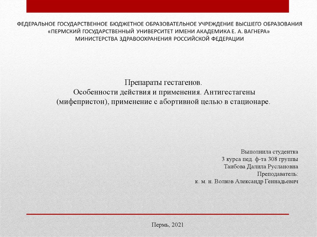 Препараты гестагенов. Особенности действия и применения. Антигестагены