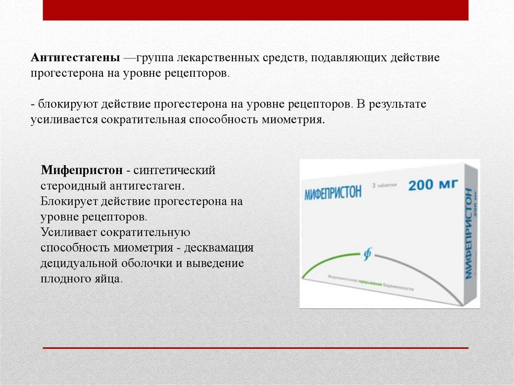 - блокируют действие прогестерона на уровне рецепторов. В результате