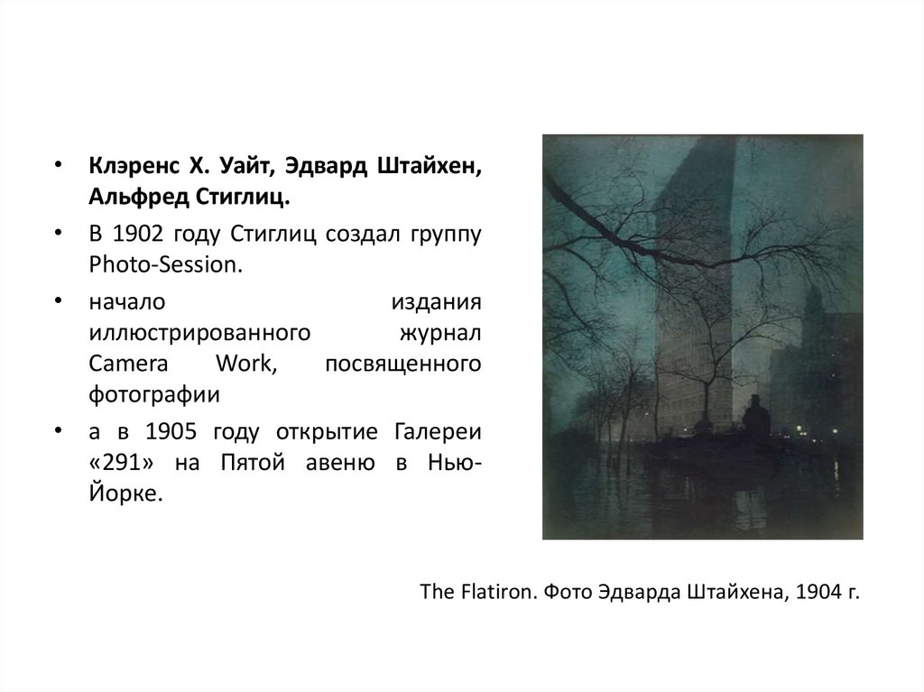 • Клэренс Х. Уайт, Эдвард Штайхен,Альфред Стиглиц.