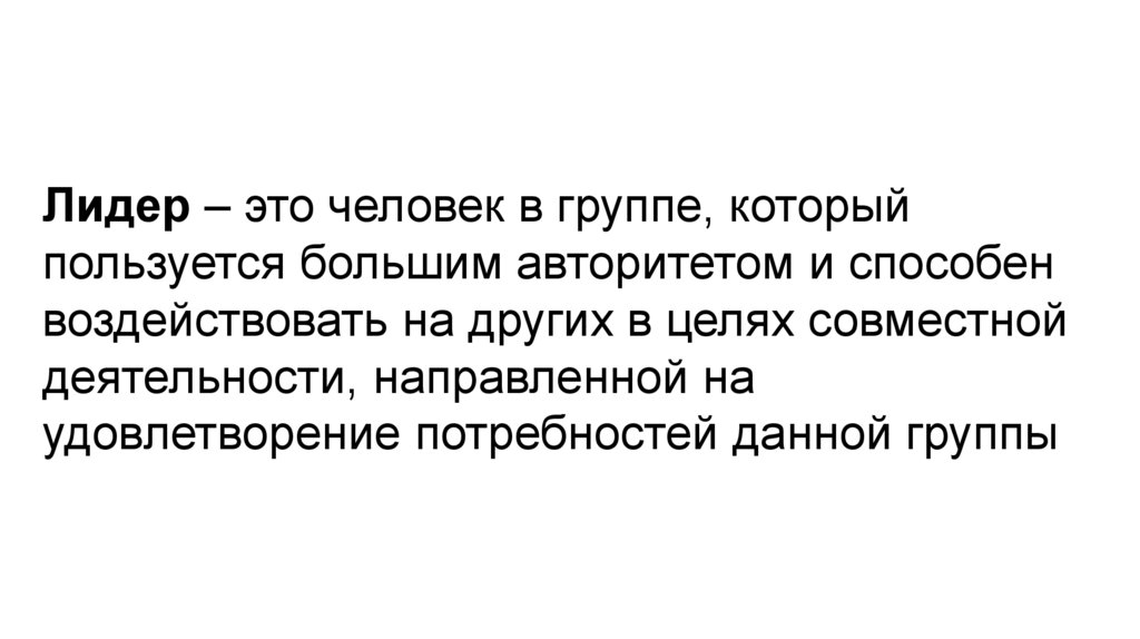 Лидер – это человек в группе, которыйпользуется большим авторитетом и способен