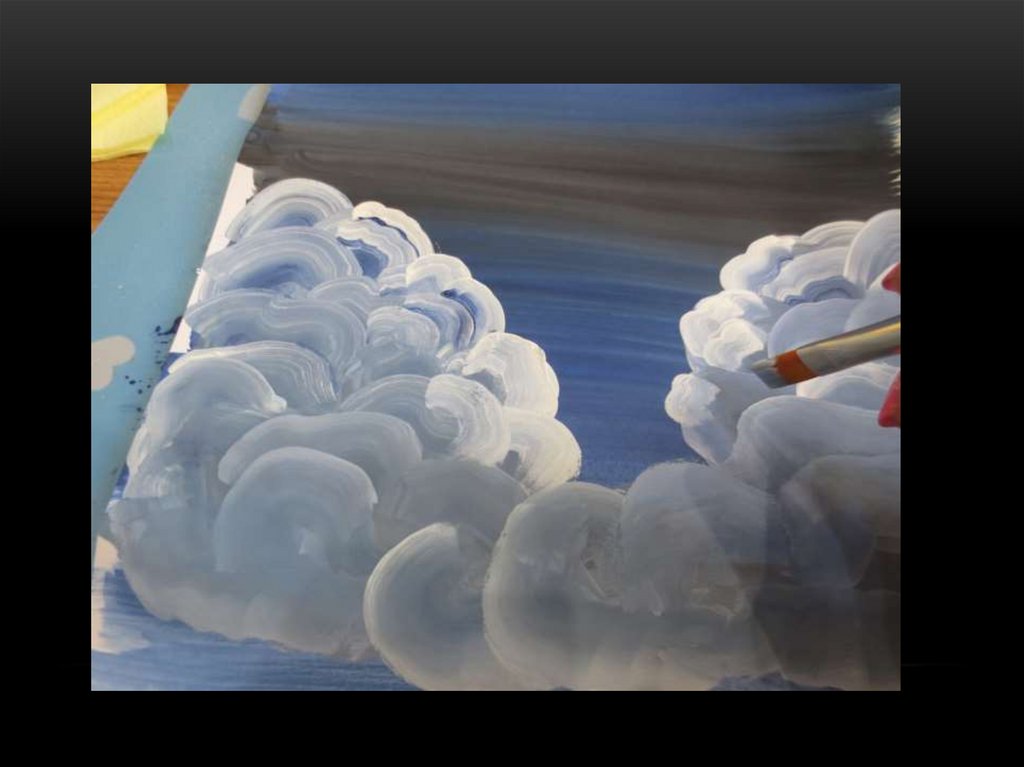 13. ЖИДКОЙ ЧЕРНОЙ ГУАШЬЮ ОТТЕНИТЕ НИЗОБЛАКОВ.