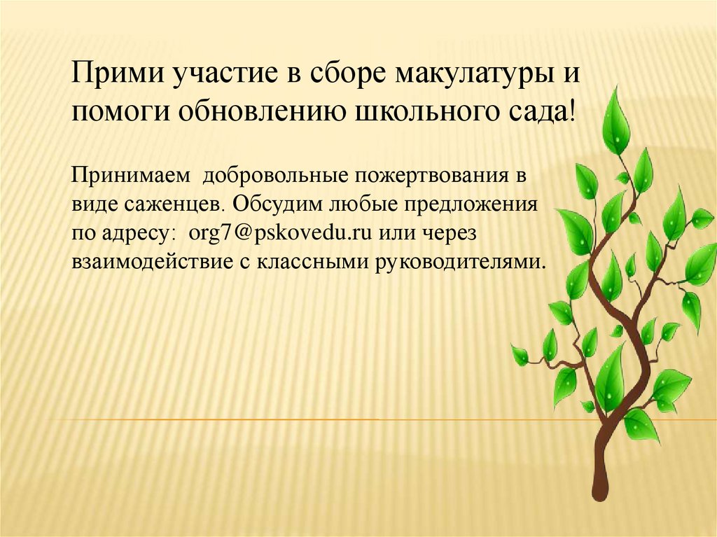 Прими участие в сборе макулатуры ипомоги обновлению школьного сада!
