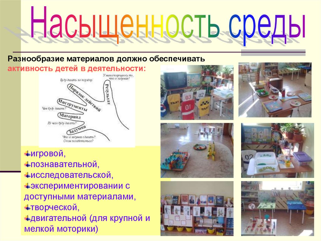 Разнообразие материалов должно обеспечиватьактивность детей в деятельности: