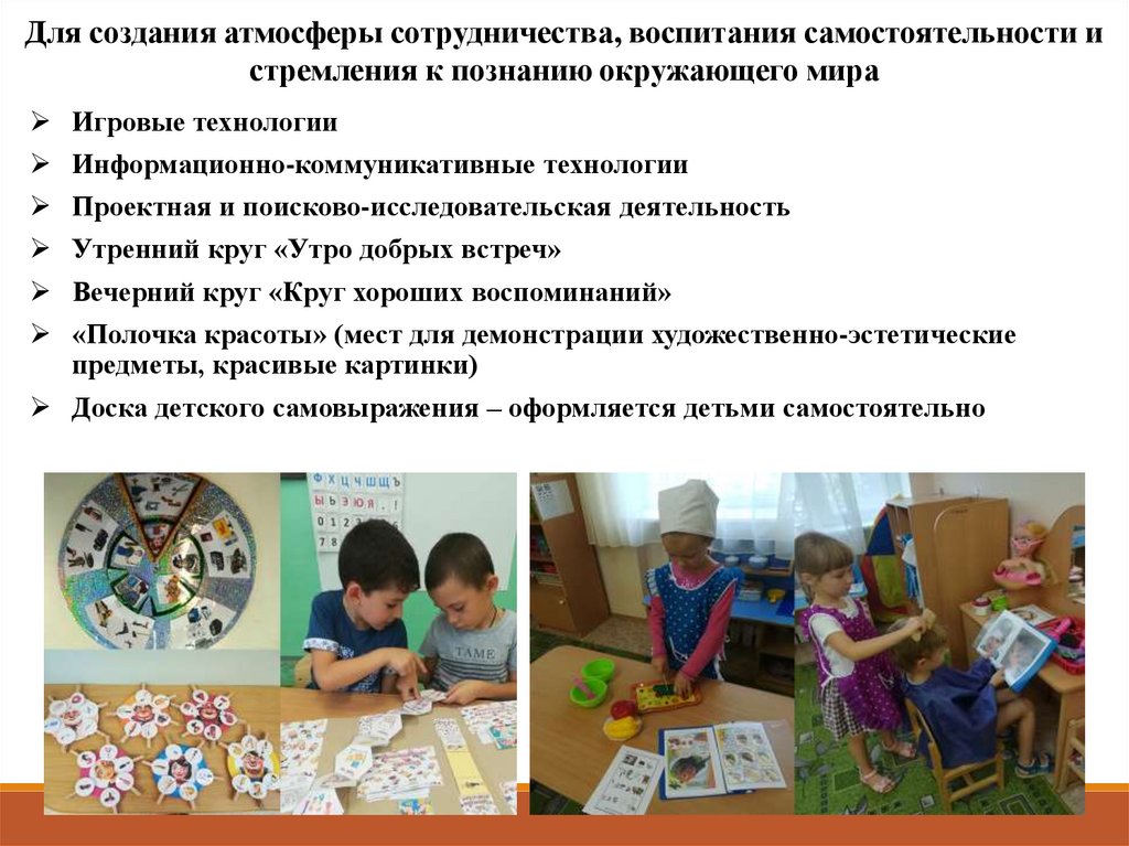 Для создания атмосферы сотрудничества, воспитания самостоятельности истремления к познанию окружающего мира