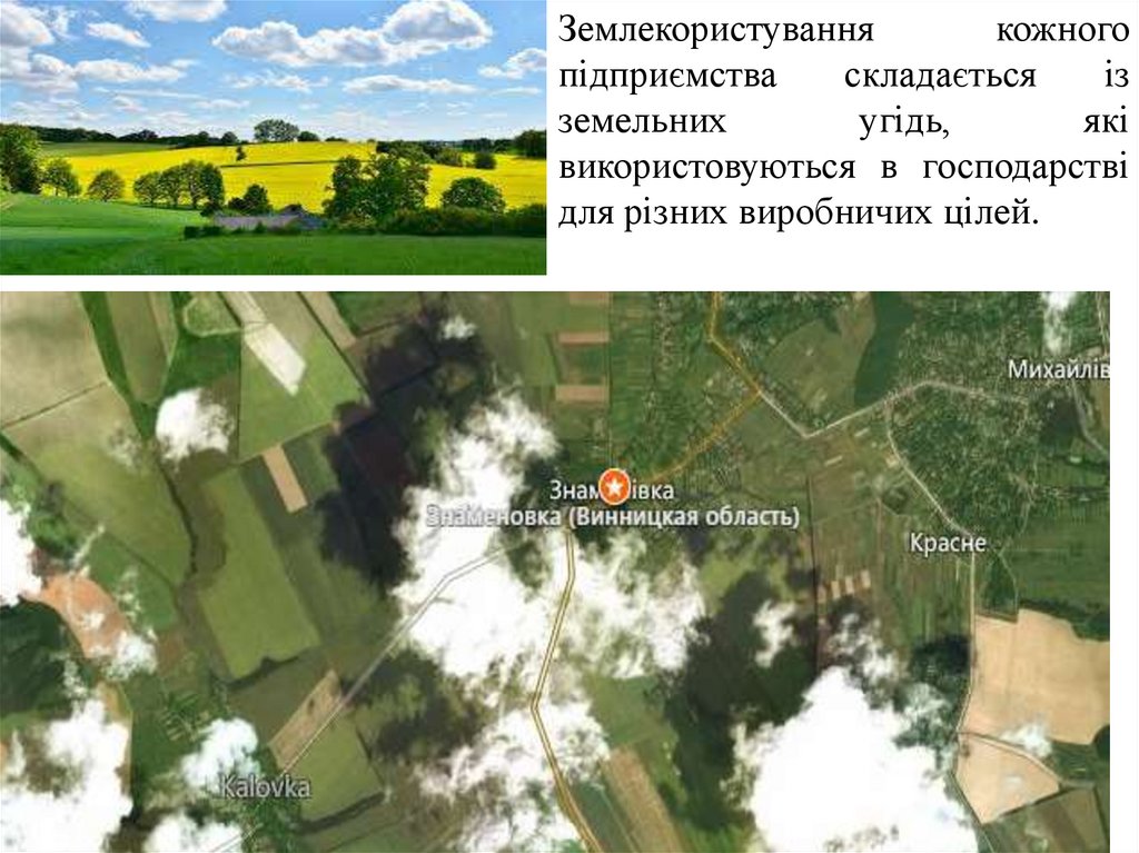 угідь: орними, лучними, лісовими й водними угіддями та природно-заповідним фондом