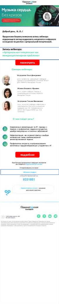 Запись вебинара содержащего взгляд кардиолога, невролога и нефролога на ведение пациентов с артериальной гипертензией
