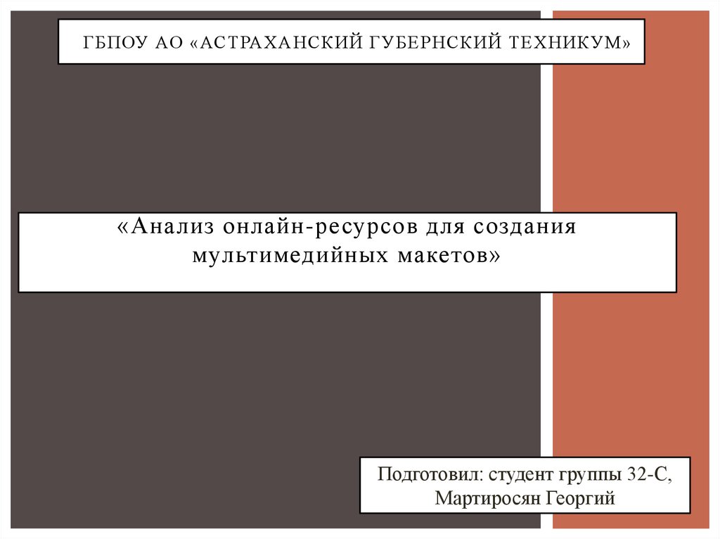 ГБПОУ АО «АСТРАХАНСКИЙ ГУБЕРНСКИЙ ТЕХНИКУМ»«Анализ онлайн-ресурсов для создания