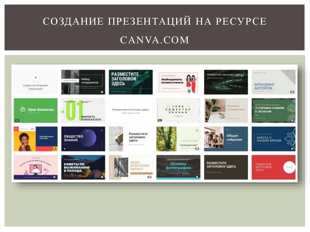 СОЗДАНИЕ ПРЕЗЕНТАЦИЙ НА РЕСУРСЕCANVA.COM