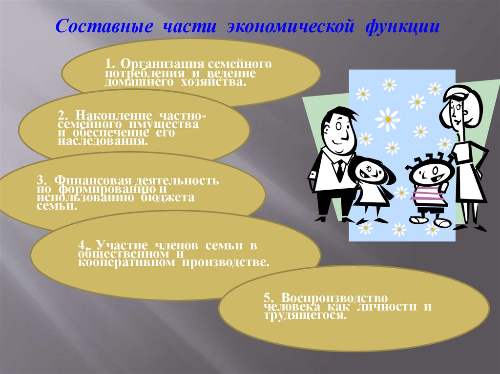 Составные части экономической функции1. Организация семейного