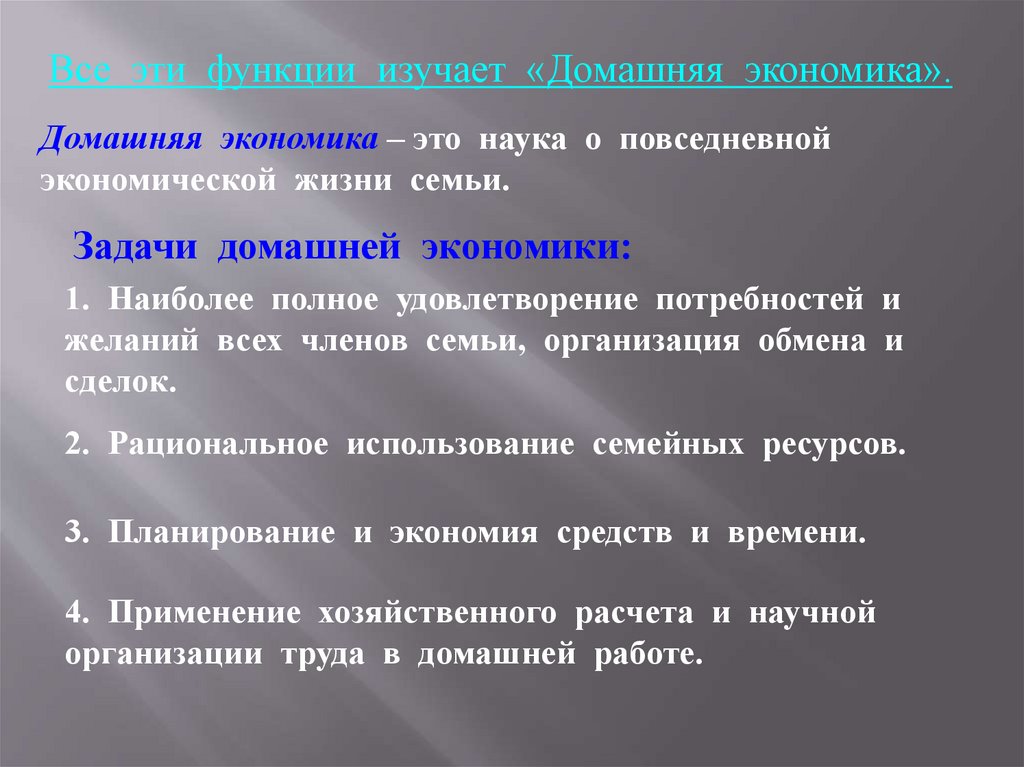 Задачи домашней экономики: