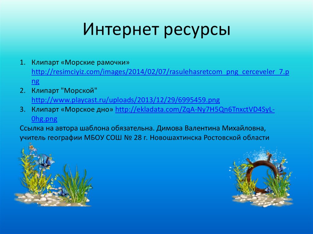 Интернет ресурсы1. Клипарт «Морские рамочки»