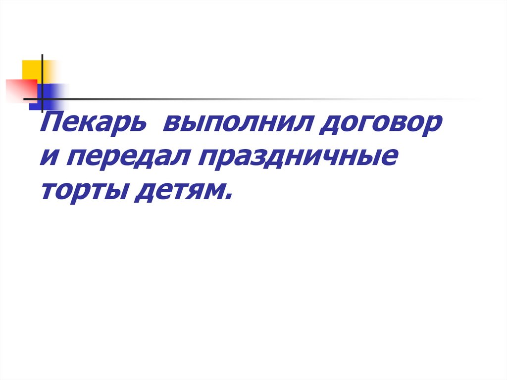 1. Пекарь выполнил договор и передал праздничные торты детям.