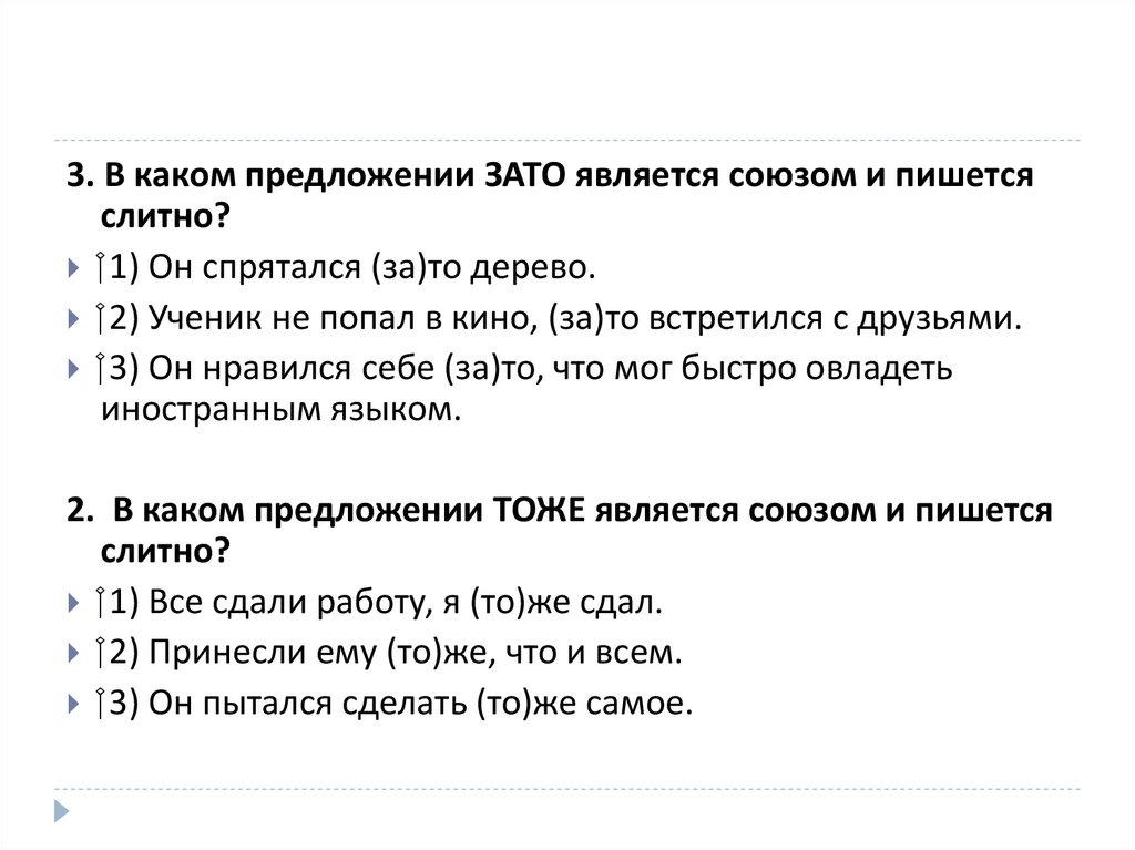 2. В каком предложении ТОЖЕ является союзом и пишется