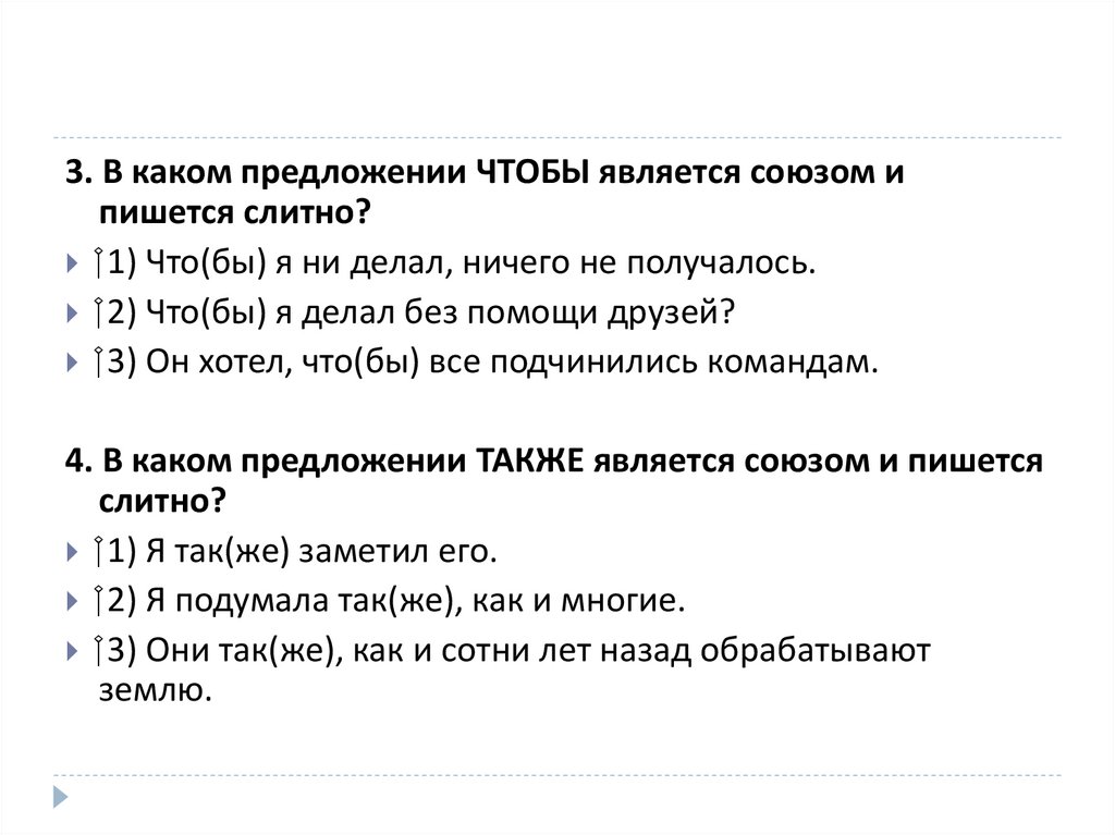 3. В каком предложении ЧТОБЫ является союзом ипишется слитно?