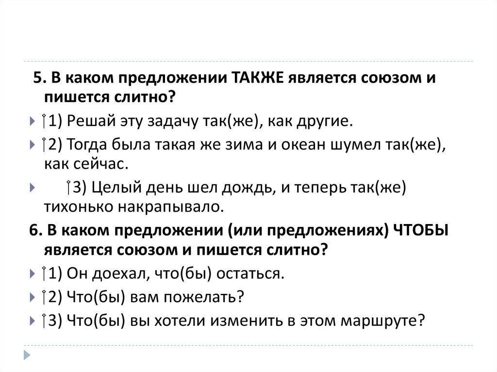 5. В каком предложении ТАКЖЕ является союзом ипишется слитно?