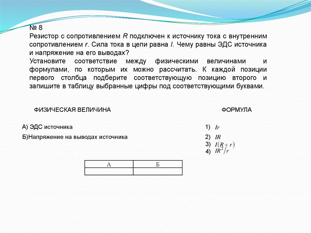№8Резистор с сопротивлением R подключен к источнику тока с внутренним
