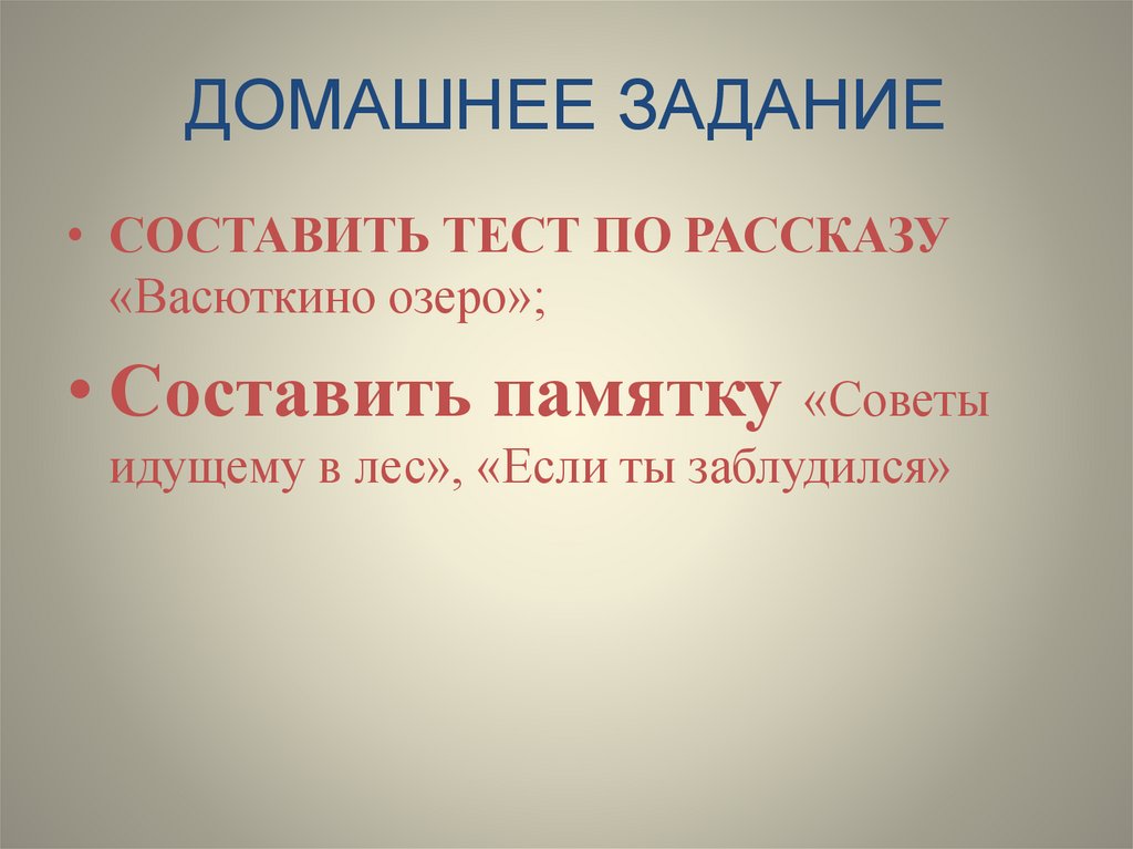 ДОМАШНЕЕ ЗАДАНИЕ• СОСТАВИТЬ ТЕСТ ПО РАССКАЗУ